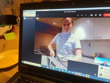 – Køkkenet var én af grundene til, at jeg valgte Midtjysk. Jeg synes, det er megafedt at få lov til at lave med til 140 mennesker, og maden på Midtjysk er bare god. Den lever fuldt ud op til min forventninger, fortæller Maja til journalisten, som er med via en anden skærm.