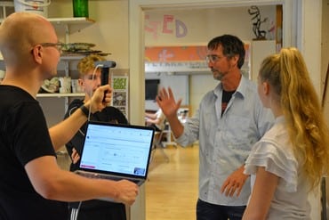 Han sad dagen lang klar med elever, som gerne ville vise rundt på skolen ved hjælp af deres mobiltelefoner. Men det var der ikke mange, der benyttede sig af.
